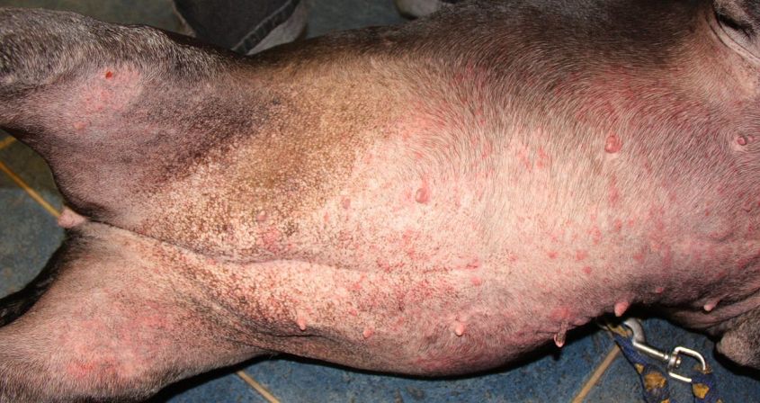 Allergic dermatitis in a dog – how terrible it must be when the whole body is itchy. (Photo: Wikimedia Commons, Kalumet, CC BY 2.0)